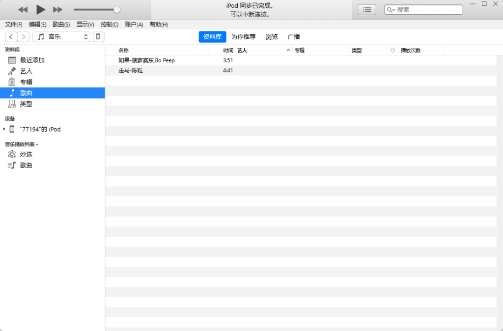 ipod下载歌曲 朵朵 发布于 2 天前 31 次阅读 支持mp3合适 下载mp3网址:https://music.liuzhijin.cn/(好货) 创建一个文件夹放歌曲,然后将文件夹同步到资料库; 选择文件夹 然后资料库就有歌曲了 接下来同步就行了 就可以听了